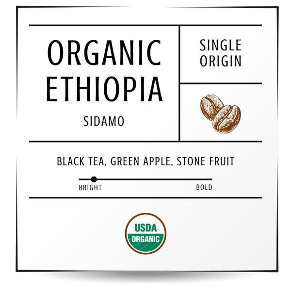 This organic Ethiopia is sourced from family-owned farms organized around the Shoye Cooperative located within the Dale district. It is comprised of indigenous heirloom cultivars and exhibits notes of lemongrass and black tea.